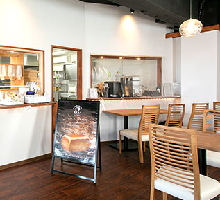大阪府狭山市、金剛駅のパン屋「食パン専門店 デアイ ザ ベーカリー大阪狭山店」。太陽のやわらかな日差しが差し込むソファー席は、当店で人気のお席です。厚切りバタートーストや季節のトーストなどと、お好きなドリンクをセットにできますので、昼下がりのおやつタイムやほっと一息つきたい時にも、気軽にご利用ください。また出来立てのフルーツサンドもお召し上がりいただけますので、店内のショーケースからお選びください。